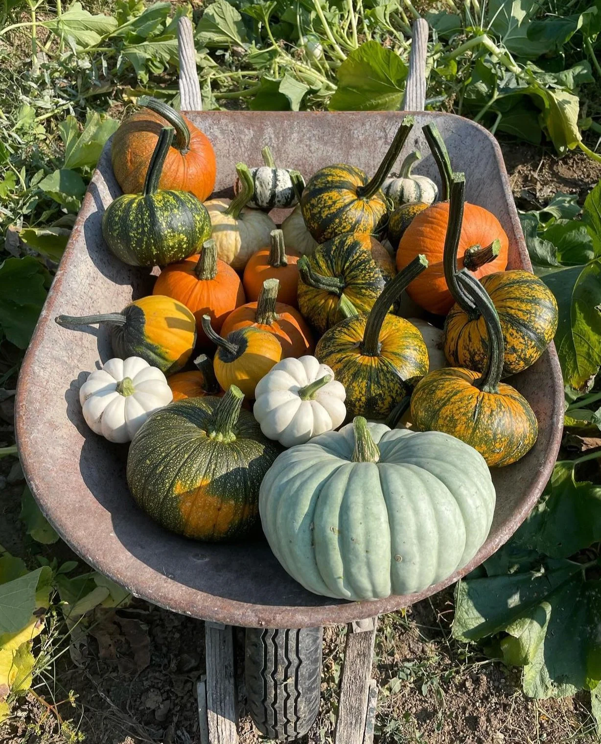 Photo Credit: Evers Ridge Farm: A wheelbarrow full of colored pumpkins at Evers Ridge Farm in Medford Oregon